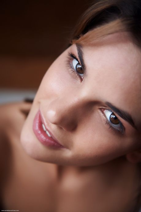 Svelte teen Demi shows off her tiny tits and shaved pussy in the nude