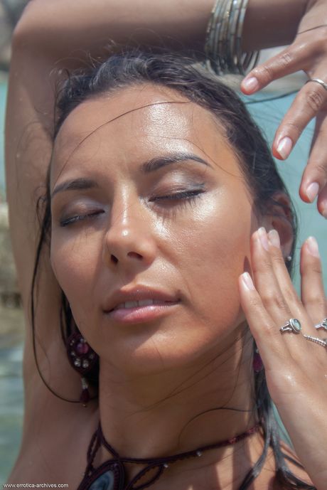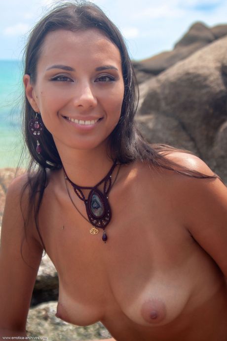 Svelte teen Nov Lera poses nude on rocks near the sea in the evening