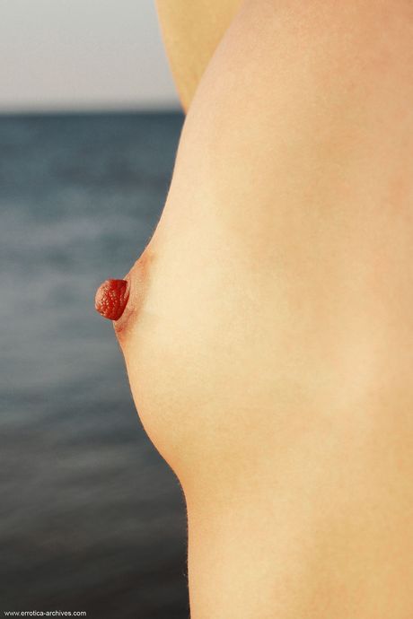 Ukrainian erotic model Dream gets naked on the beach and shows her tiny tits