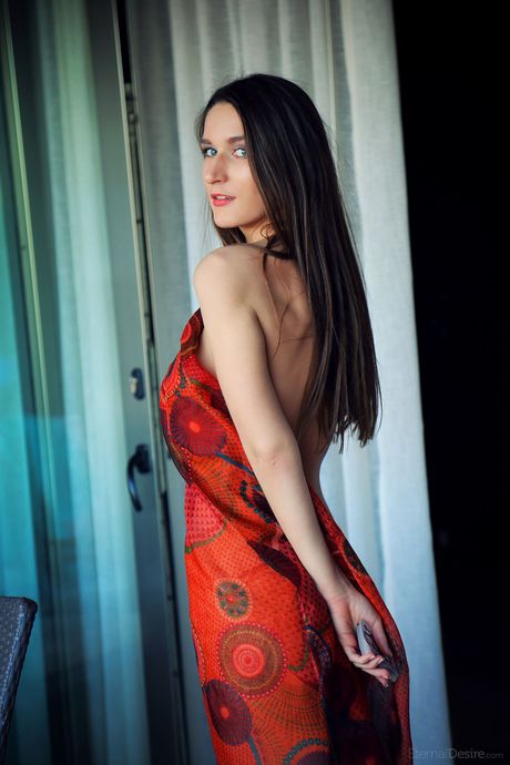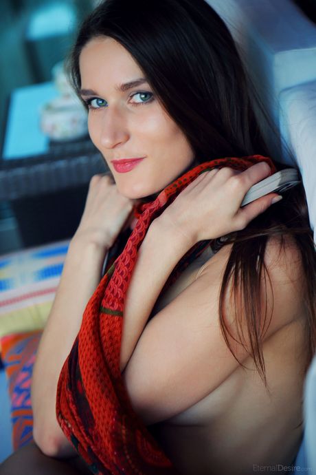 Beautiful brunette Elina shows her tiny tits and poses naked in a solo