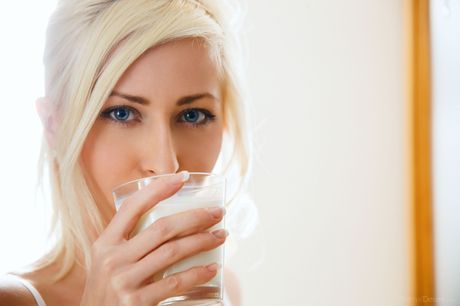 Blonde teen Janelle B spills milk on her tits before getting naked in the kitchen