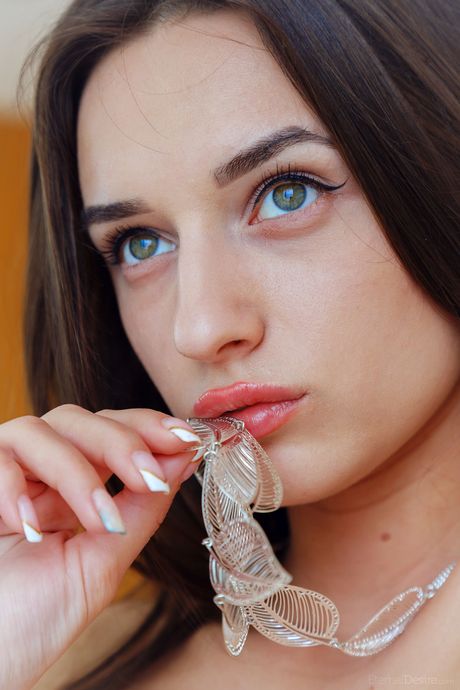 Delicate teen Gloria Sol shows her small tits and poses nude in a solo