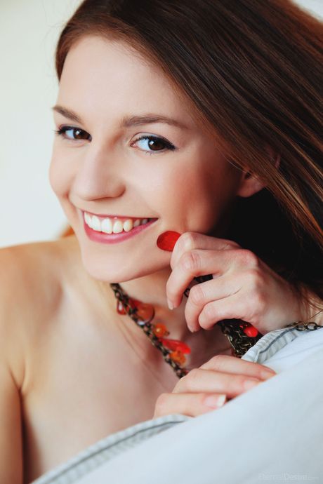 Delightful teen Sofi Shane highlights her perfect ass while naked on a bed