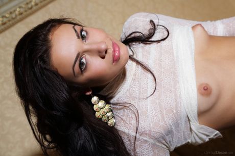 Innocent teen Angelique A spreads her long legs wide open to show her bald pussy