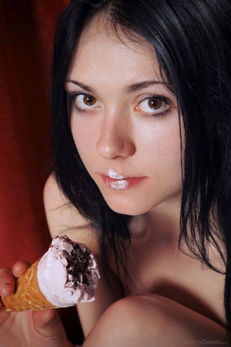 Petite teen Eilona removes her lingerie to get completely naked on a bed