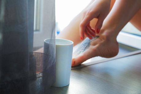 Skinny Ukrainian erotic model Talinka strips and teases with her tiny tits & pussy