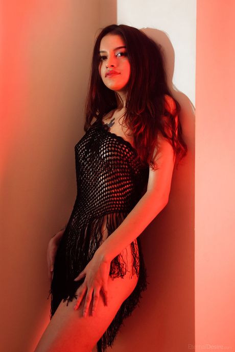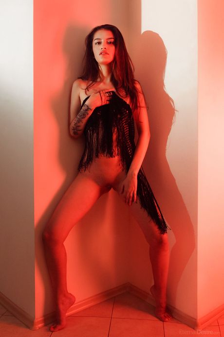 Teen solo girl Liron Shein touches her pussy while naked on a floor