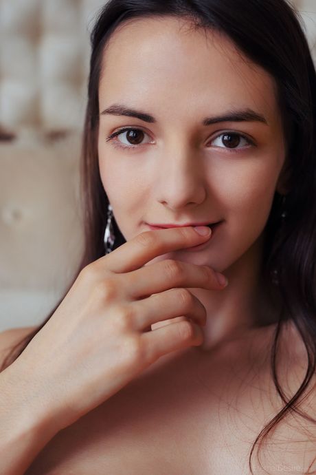Tender teen Erika C shows her tiny tits and ass while naked on her bed