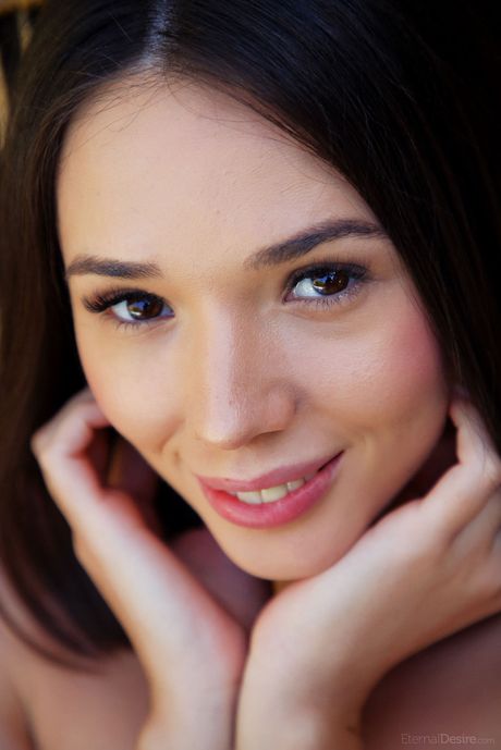 Young brunette Eve Sweet models totally naked on a backyard chair