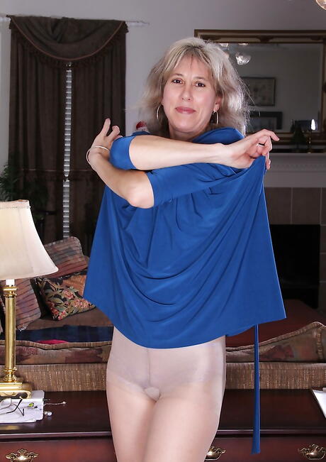 Excellent aged Olive Jones in sexy skirt bares tiny tits and spreads her legs