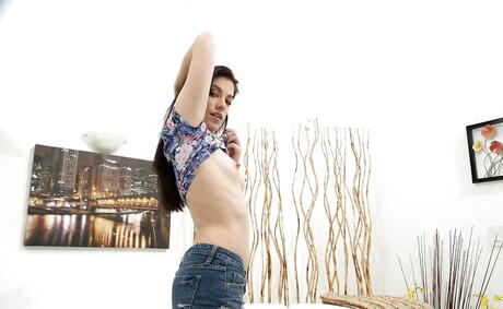 Excellent american babe Bobbi Dylan exposes small tits and jerks off