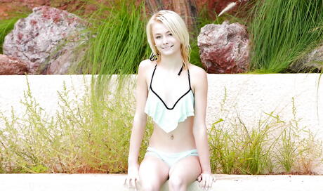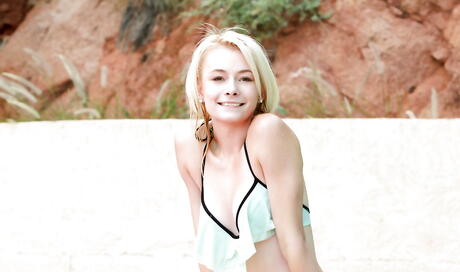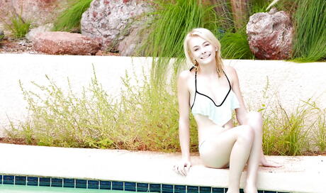 Excellent american blond teen Maddy Rose reveals small tits and masturbates near the pool