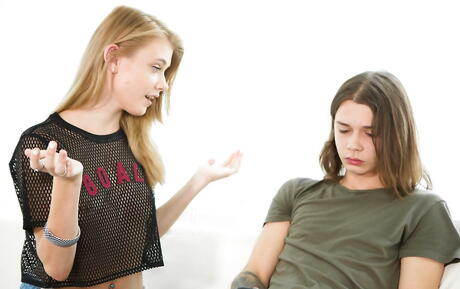 Excellent american blond youthful Hannah Hays in panties work on big cock and takes a cumshot in her mouth