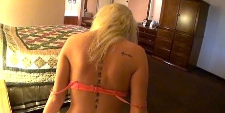 Excellent american blonde cutie Emily Austin in sexy shorts bares big titties and jerks off