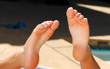 Excellent american blonde hottie Tasha Reign likes some hot foot fetish at pool