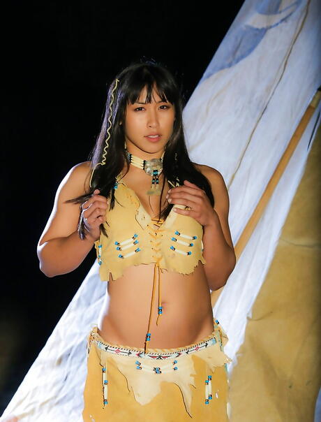 Excellent american bombshell Mia Li exposing big hooters and spreading her legs