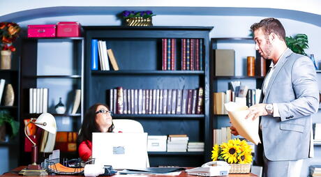 Excellent american dark hair Eva Lovia in sexy skirt suck big rod and take and fucked hard in office