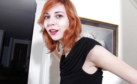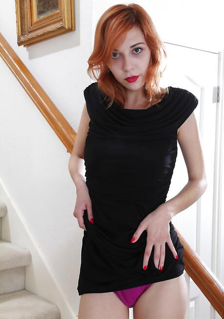 Excellent american redhead youthful Nancy Reid in undies exhibits her ass and shaved pussy