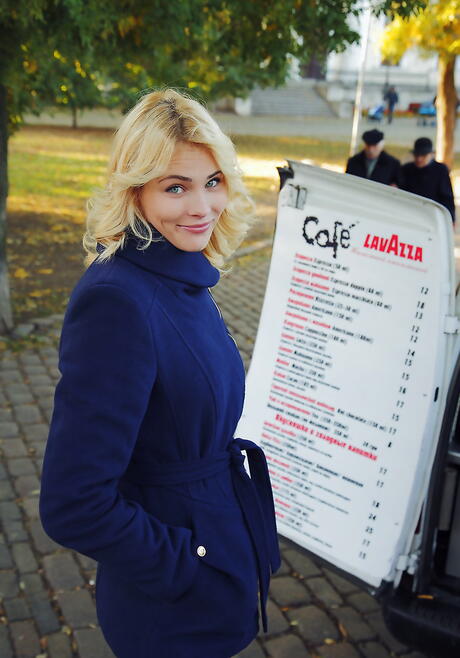Excellent blond teen Cordelia A in sexy undies bares small tits and spreads her legs outdoor