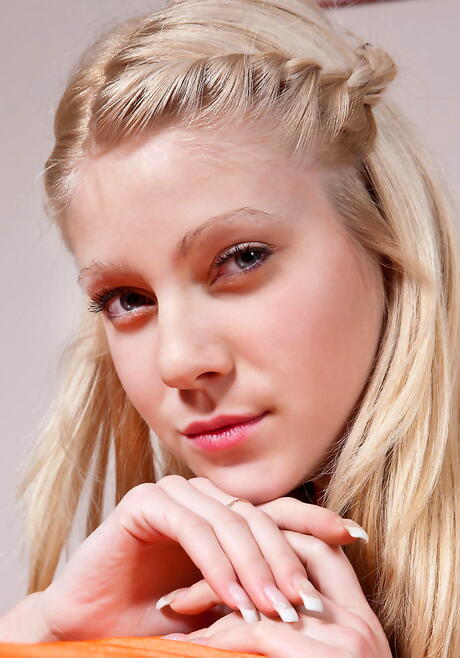 Excellent blonde youthful Bayle A unveils tiny tits and spreads her legs