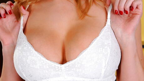 Excellent british blond porn star Lexi Lowe in sexy undies exposes big hooters and spreads her legs