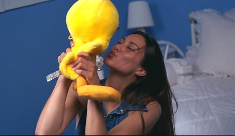 Excellent brunette youthful Adrianna in sexy panties exposing small tits and spreading her legs