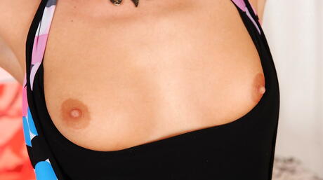 Excellent czech babe Kety Pearl in fancy skirt exhibiting her ass and masturbating