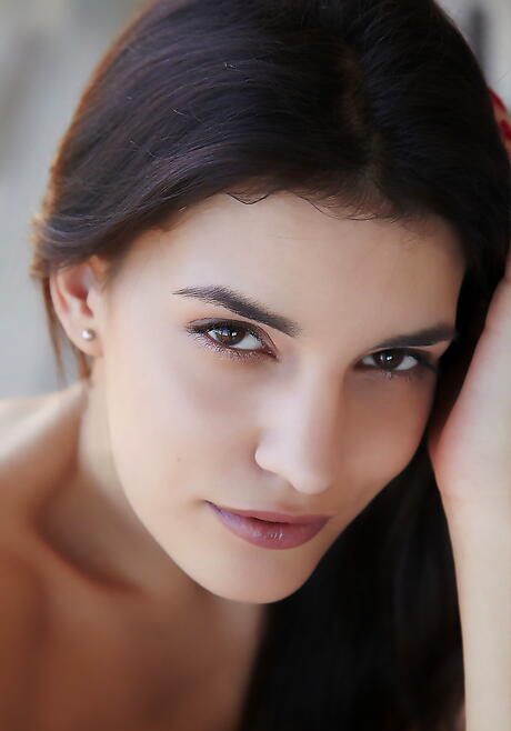 Excellent czech dark hair teen Candice Luca exhibiting big hooters and spreading her legs