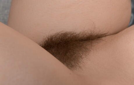 Excellent dark hair teen Klarissa in sexy panties baring tiny tits and hairy pussy