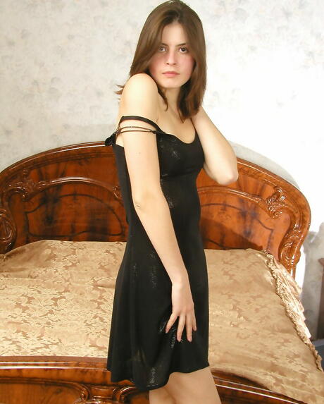 Excellent dark-haired teen Masha in hot underwear exhibiting tiny tits and spreading her legs