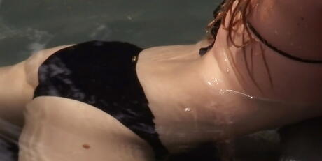 Excellent girls Emma Mae and Jessi Andrews enjoy some playful lesbian foreplay at pool