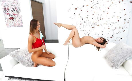 Excellent girls Jenna Sativa and Val Midwest in undies licking tight pussies during hot lesbian sex