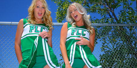Excellent girls Sunni and Nicole in cheerleader outfit reveals sexy bodies outside