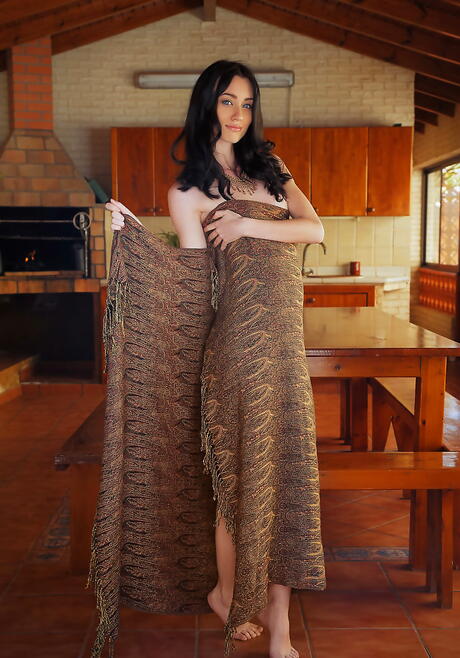 Excellent hungarian dark hair teen Zsanett Tormay shows small tits and spreads her legs