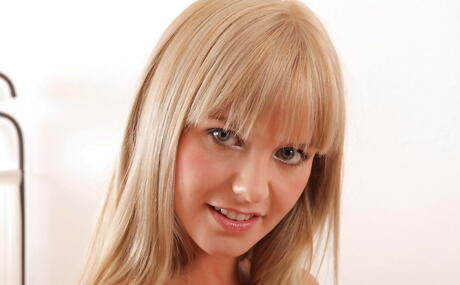 Excellent latin blonde milf Bella Baby exhibiting big hooters and shaved pussy