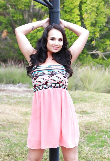 Excellent latin brunette milf Holly West showing big boobies and sexy butt outdoor