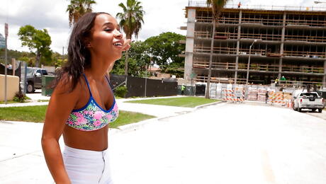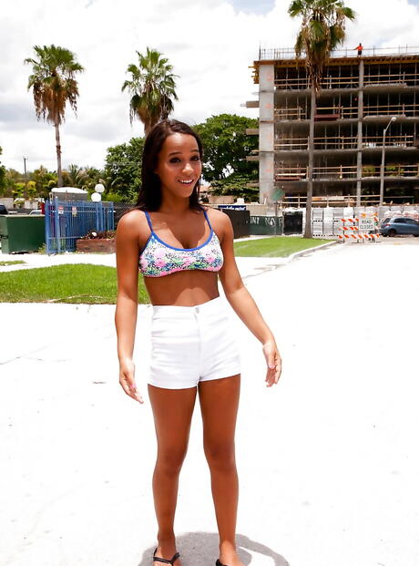 Excellent latina cutie Hollie Berry in fancy shorts showing big knockers and hot ass outdoor