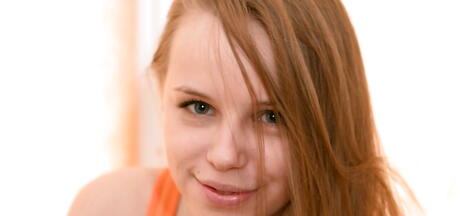 Excellent red-haired teen Mia in sexy undies exhibits big hooters and shaved pussy