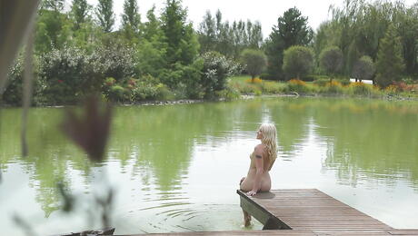 Excellent russian blond porn star Lola Taylor shows her butt in and jerks off