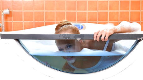 Excellent russian blond teen Katarina Muti in hot panties exhibits her ass and spreads her legs in bathroom