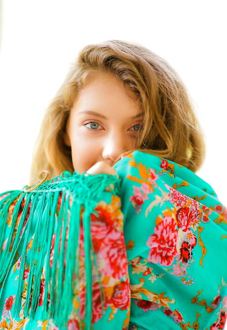Excellent russian teen Elena Koshka shows small tits and spreads her legs