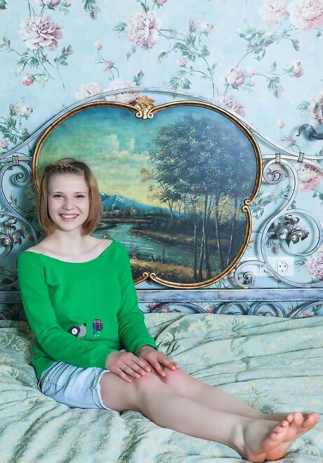 Excellent teen Maria M in skirt shows big boobs and spreads her legs