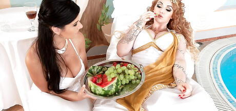Excellent women Harmony Reigns and Alex Black in cosplay costume licking tasty pussies during hot lesbian sex
