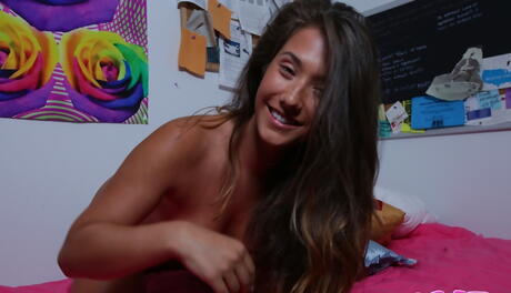Facinating american babe Eva Lovia exhibits big boobs and jerks off