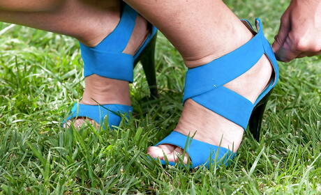 Facinating american blonde milf Jennifer Best likes some hot foot fetish outdoor