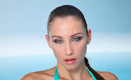 Facinating american hottie Celeste Star showing big hooters and butt at pool
