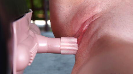 Facinating cutie Charlotta showing big titties and jerking off outdoor
