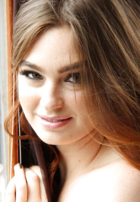 Foxy american brunette Jodi Taylor in jeans baring small tits and hairy twat