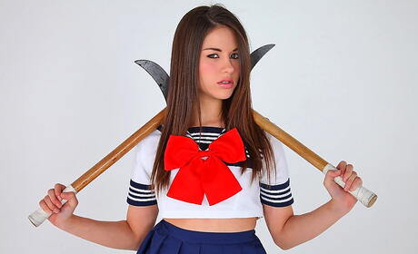 Foxy american brunette youthful Shyla Jennings reveals her ass