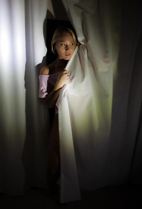 Foxy american porn star Aj Applegate uncovers tiny tits and spreads her legs